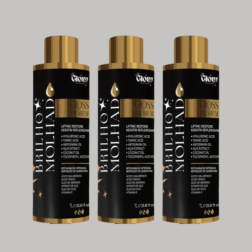 3 unidades da Lisa Glow Professional Máscara Gloss Premium Brilho Molhado 1000ml (1kg).